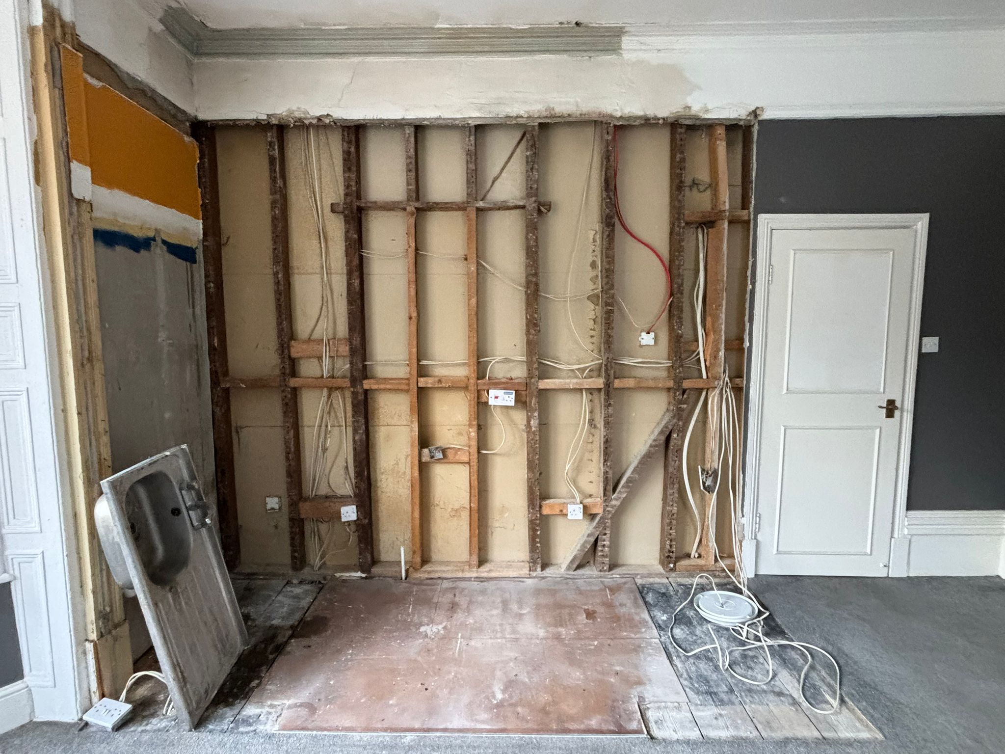 In order to undertake a comprehensive renovation of the property, our team undertook a thorough deconstruction process that involved the removal of the existing kitchen. This was a necessary step to ensure a clean slate for the installation of new fixtures and appliances. Prior to commencing this work, we took the precaution of safely disabling the electrical and plumbing systems, allowing us to carry out repairs with minimal disruption to the site. Once these essential services had been restored to full functionality, our team carefully cleared the area, ensuring that it was ready for the installation of the new kitchen. Our client’s father will then take over the installation of this bespoke unit, bringing his own expertise and vision to create a truly unique and functional space.